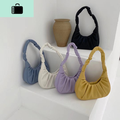 甜美新月包软面轻便可爱少女包褶皱云朵包韩版流行时尚手提腋下包NEW LAKE女士单肩包