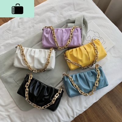 腋下包女2020流行新款潮夏季时尚网红褶皱链条斜挎仙女云朵单肩色NEW LAKE女士单肩包
