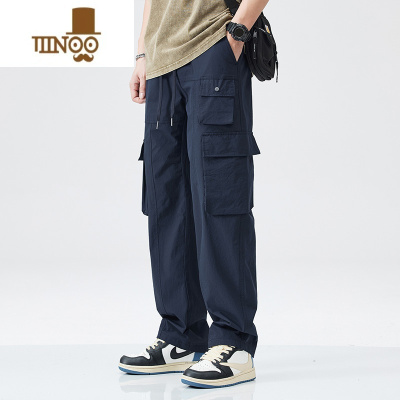 YANXUGU夏季薄款日系复古休闲裤男美式速干冰丝直筒口袋机能工装裤