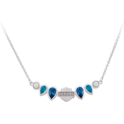 Harley Davidson女款蓝色吊坠石项链优质银灵动设计配饰