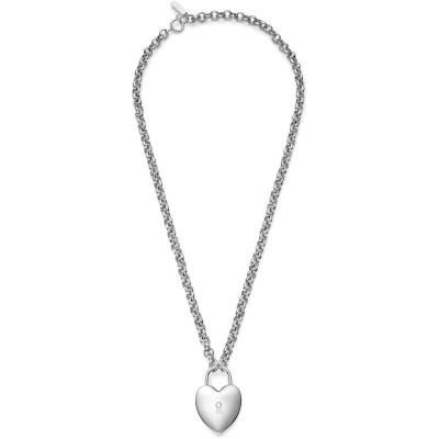 Emporio Armani女士复古爱心锁链粗链条水晶吊坠项链优雅礼物