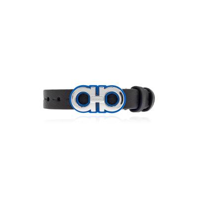 Salvatore Ferragamo男士黄铜小牛皮简约黑色潮流饰扣手链