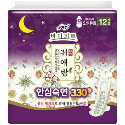 GUIAINIANG贵爱娘(闺艾朗)无荧光剂中草药棉柔 夜用 卫生巾 330mm*12片 超长纤巧
