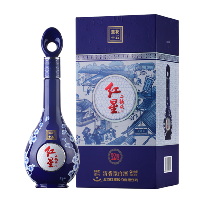红星二锅头 蓝花15 清香型白酒 52度 500ml 单瓶装(新老包装随机发货)