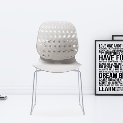 臻远ZY-7832 简约休闲办公椅轻奢铁艺靠背椅 白背白座