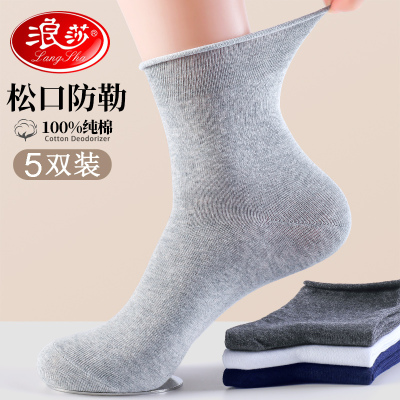 浪莎袜子男士纯棉防臭春秋冬季中老年人松口袜中筒宽松老人全棉袜