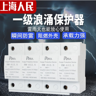 苏宁 上海人民 浪涌保护器一级SPD阻燃避雷器T1电涌模块开关 4p 25ka 385V
