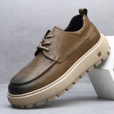 秋季新款真皮男鞋潮流百搭皮鞋厚底防滑休闲鞋男士歪头小丑鞋