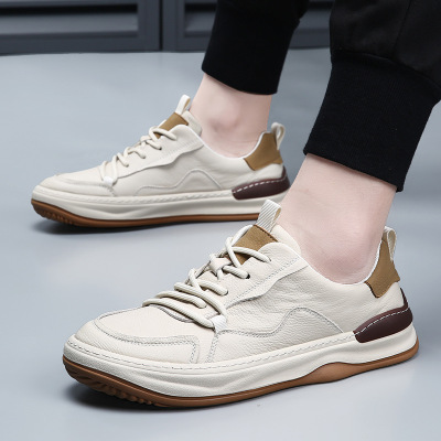 休闲鞋子男2025春季新款复古板鞋男休闲运动潮流拼色系带男士皮鞋