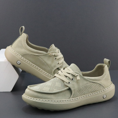 牛皮男鞋子2025春季新款歪头小丑鞋潮真皮透气百搭运动男士休闲鞋