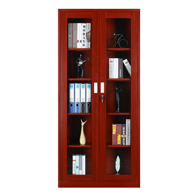 苏美特办公室档案储物柜红木纹家用书柜玻璃铁皮柜子钢制财务转印柜通玻文件柜