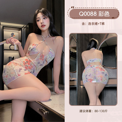 九里晴川魅衣性感内衣女士纯欲魅力装秘书装OL装花开点点吊带裙 九里晴川Q0088[花开点点吊带裙-彩色] 均码