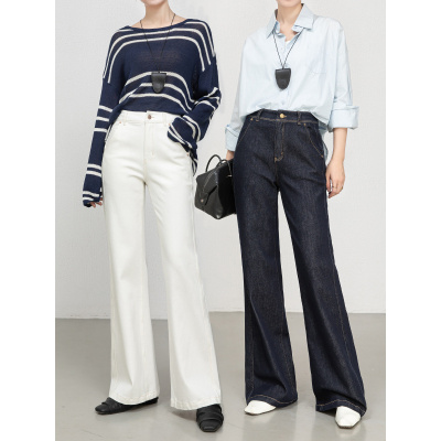 高腰微喇牛仔裤女年秋季新款四面弹宽松显瘦筒喇长裤