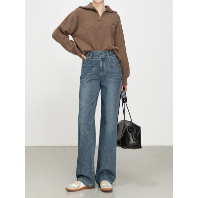 高腰显瘦百搭宽松拖地裤秋季新款窄版阔腿牛仔裤女