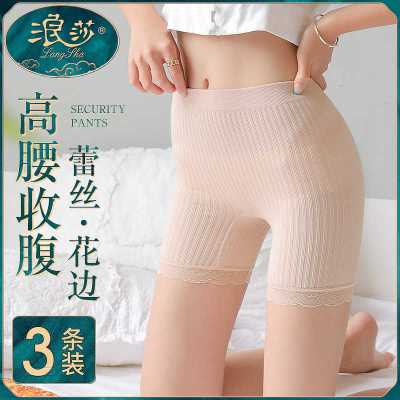 浪莎3条安全裤女防走光不卷边可外穿蕾丝花边内裤二合一收腹束腰薄款