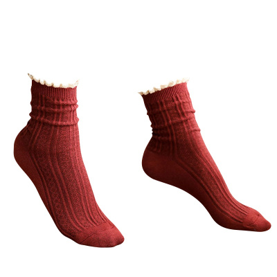 浪莎堆堆袜子女夏季薄款棉袜日系韩国花边蕾丝中筒袜5双