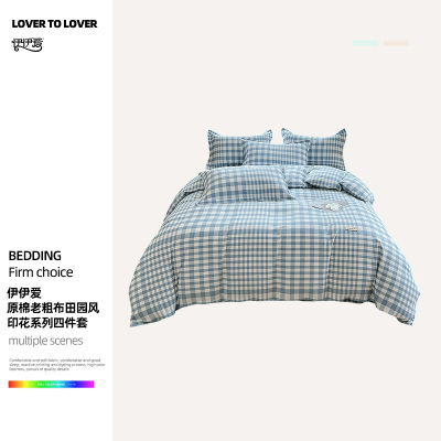 伊伊爱 原棉老粗布田园风印花系列四件套