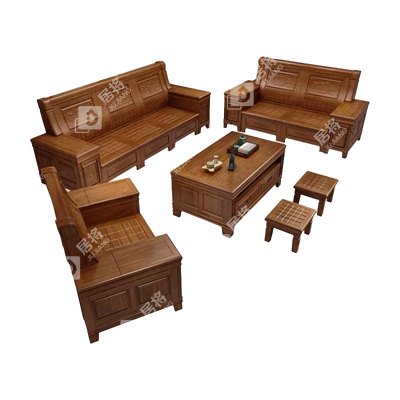 居将 JJ4022939 香樟木实木沙发组合新中式冬夏两用沙发 1+2+3+茶几+凳子组合