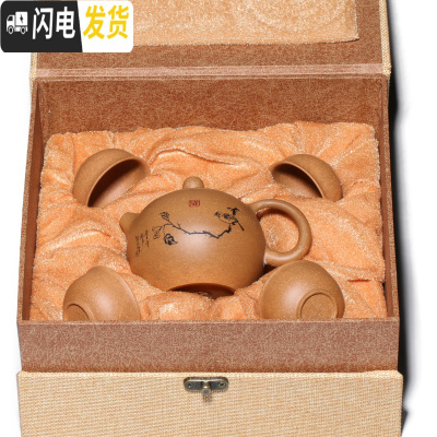 三维工匠宜兴纯全手工紫砂壶捡漏大容量仿古壶西施壶家用泡茶壶具套装 一壶四杯西施壶150CC锦盒装茶具