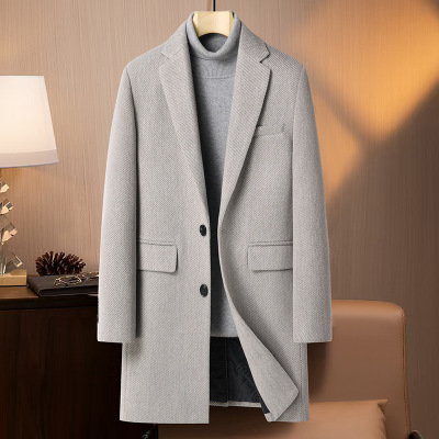 羊毛呢大衣男中长款中老年冬季爸爸领导风呢子男士外套加厚冬季男装中老年羊绒大衣男中长款羊毛呢子加厚爸爸装外套