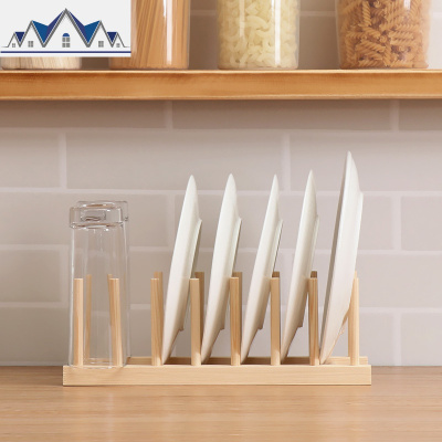 日式多格实木托架盘子架木质水杯碟沥水架盘子支架餐具分类置物 三维工匠收纳层架