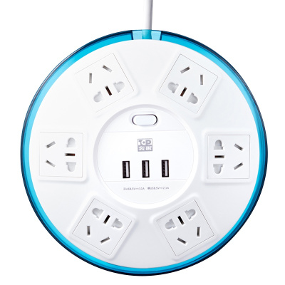 突破(TOP)清月SR21S六位带USB全长1.8米圆形飞碟新国标带保护门总控开关拖线板插座/插线板排插接线板蓝白