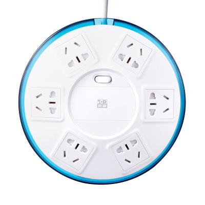 突破(TOP)清月SR21六位全长1.8米圆形飞碟插座新国标带儿童保护门总控开关拖线板插座插线板排插接线板蓝白