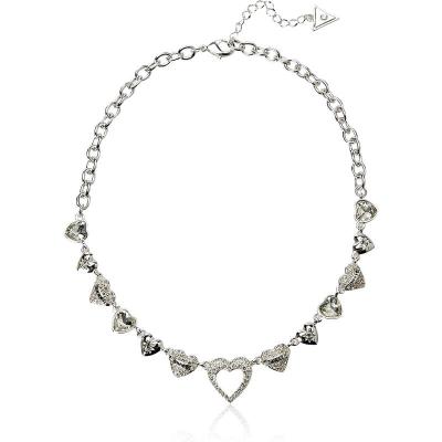 盖尔斯(GUESS)闪耀心形水晶银色调项链女款百搭时尚饰品日常晚宴通用