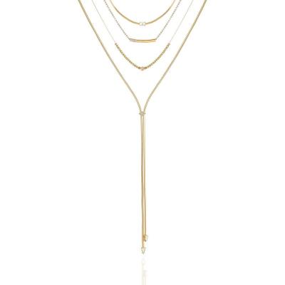 盖尔斯(GUESS)多层金属项链镀金玻璃石21英寸可调锁扣女式优雅简约