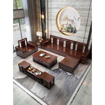 新品景山百岁 现代中式乌金木实木沙发组合冬夏两用新中式客厅可储物木质沙发
