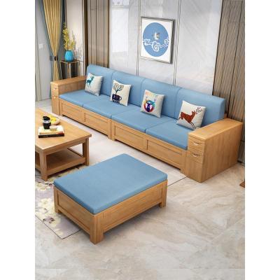 森美人实木沙发组合冬夏两用小户型客厅新中式布艺农村储物沙发经济型