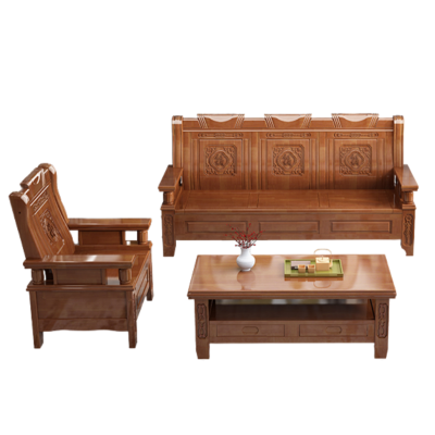 伟樽实木沙发单+单+三人位+茶几套
