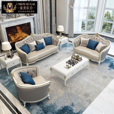 森美人美式实木头层沙发欧式皮艺沙发简美新古典整装1+2+客厅组合
