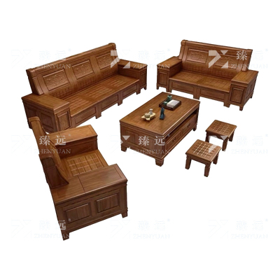 臻远 ZY4022939 香樟木实木沙发组合新中式冬夏两用沙发 1+2+3+茶几+凳子组合