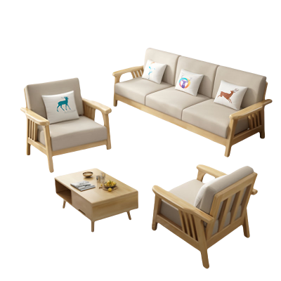 域赢沙发大小户型实木沙发北欧家具沙发客厅组合-四人位+茶几