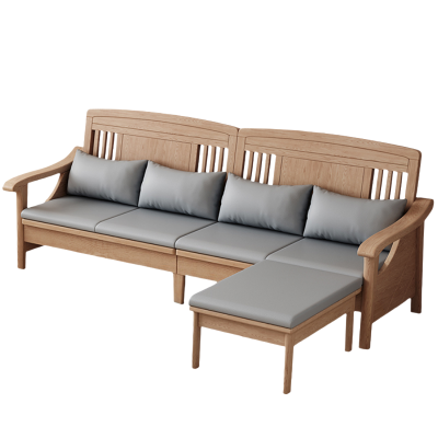 铭思达实木沙发四人位+脚踏套