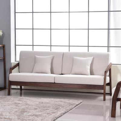 森美人北欧黑胡桃木沙发全实木布艺组合冬夏两用简约现代小户型客厅家具