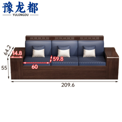 豫龙都 实木休闲沙发 三人位 张