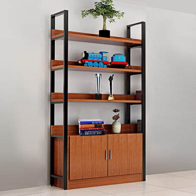 货架钢木书架带柜门简易置物架客厅储物柜展示架多层组合化妆柜5层长120*30*182带柜(可定制尺寸颜色)
