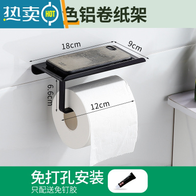 敬平卷纸架厕纸架卫生间酒店手纸架壁挂纸巾架免打孔擦手纸盒放手机架 豪华款黑色铝卷纸架(粘钉)纸巾盒