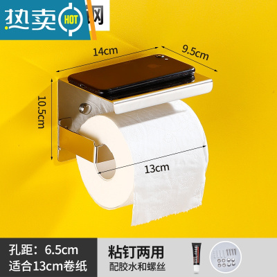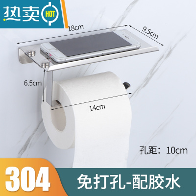 敬平卷纸架厕纸架卫生间酒店手纸架壁挂纸巾架免打孔擦手纸盒放手机架 304级不锈钢卷纸架(免打孔推荐纸巾盒