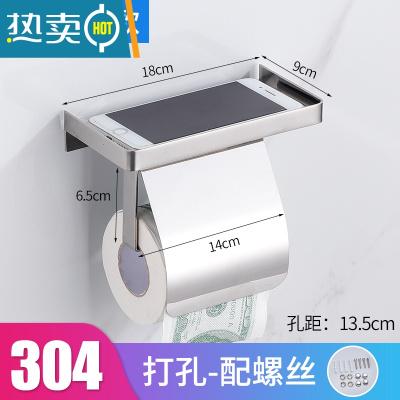 敬平卷纸架厕纸架卫生间酒店手纸架壁挂纸巾架免打孔擦手纸盒放手机架 升级304不锈钢带盖卷纸架(打孔纸巾盒