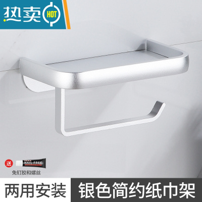 敬平卷纸架厕纸架卫生间酒店手纸架壁挂纸巾架免打孔擦手纸盒放手机架 豪华款银色铝卷纸架(粘钉)纸巾盒