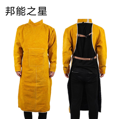邦能之星牛皮罩衣隔热防烫耐磨耐高温防护衣焊工反穿衣工作服围裙N5633