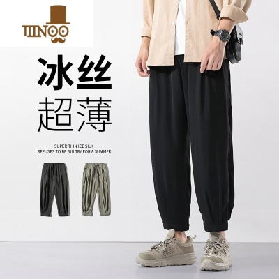 YANXU裤子冰丝男裤休闲裤夏季薄款速干9分裤男生宽松潮牌九分裤