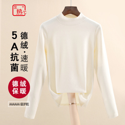 中领打底衫女春秋新款女装长袖女士T恤双面德绒发热加绒上衣
