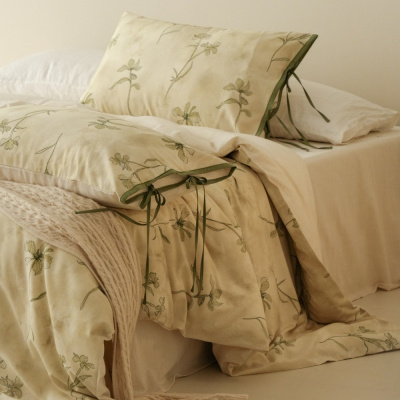 超柔透气禅意风棉麻四件套贴身轻柔被套知性女士床品绑带款枕套