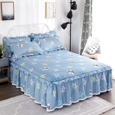 美帮汇全棉床罩床套防滑床裙式单件全棉保护防尘罩1.5米1.8m床单1三件套 星梦缘蓝 180x200[单件床裙]