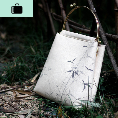 无香原创 |竹影 中国风手绘汉服包包古风中式手工棉麻小手拎女包NEW LAKE女士手提包