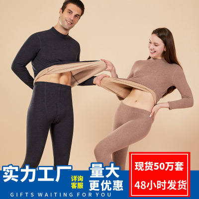 羊羔绒保暖内衣新款秋衣裤加绒加厚发热加大码半高领男女情侣套装